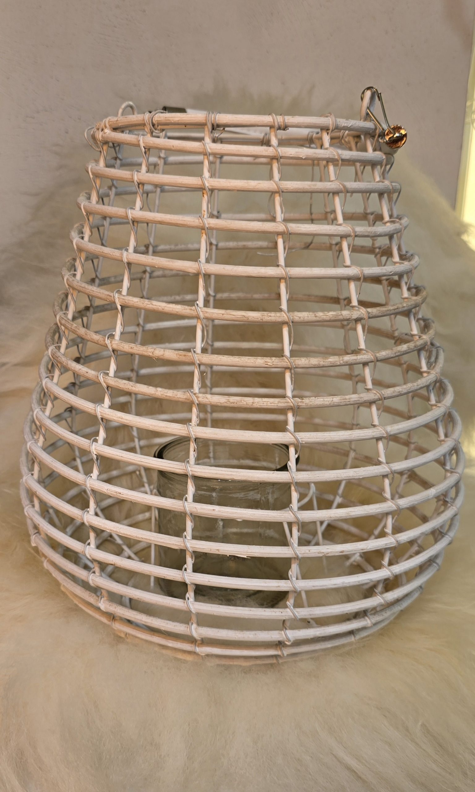 Diese Laterne ist aus Holz mit ein Glas.