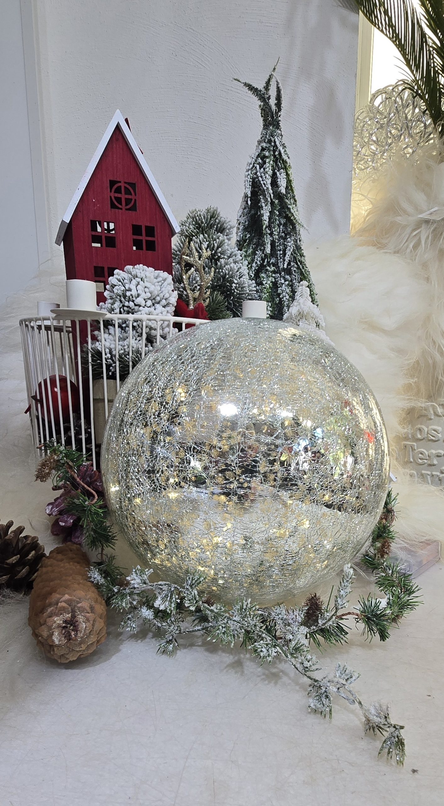 Glaskugel silber ohne Licht ist gut für Dekorationszwecke geeignet.