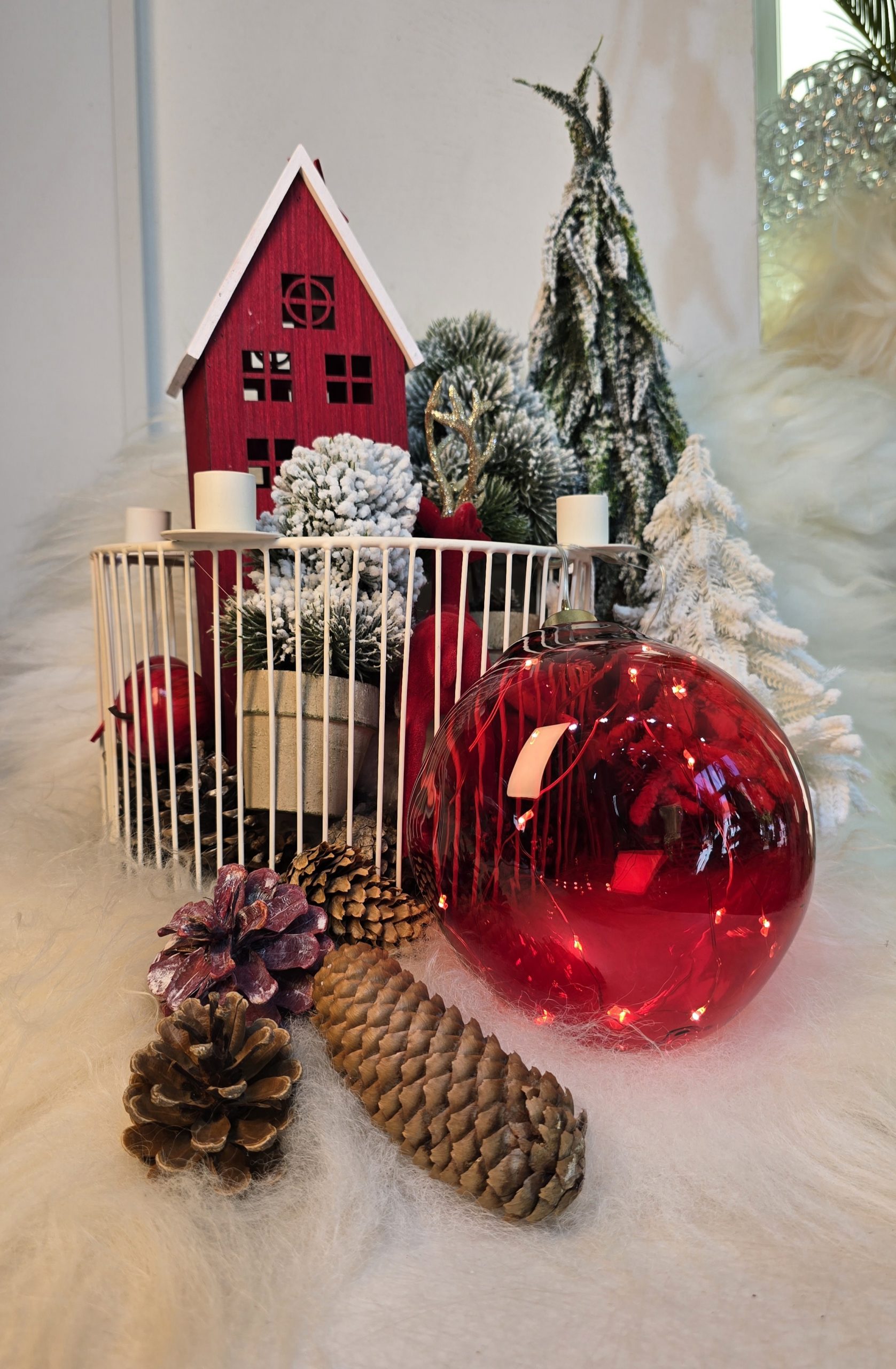 Diese organischrote LED Glaskugel ist zum hängen geeignet.