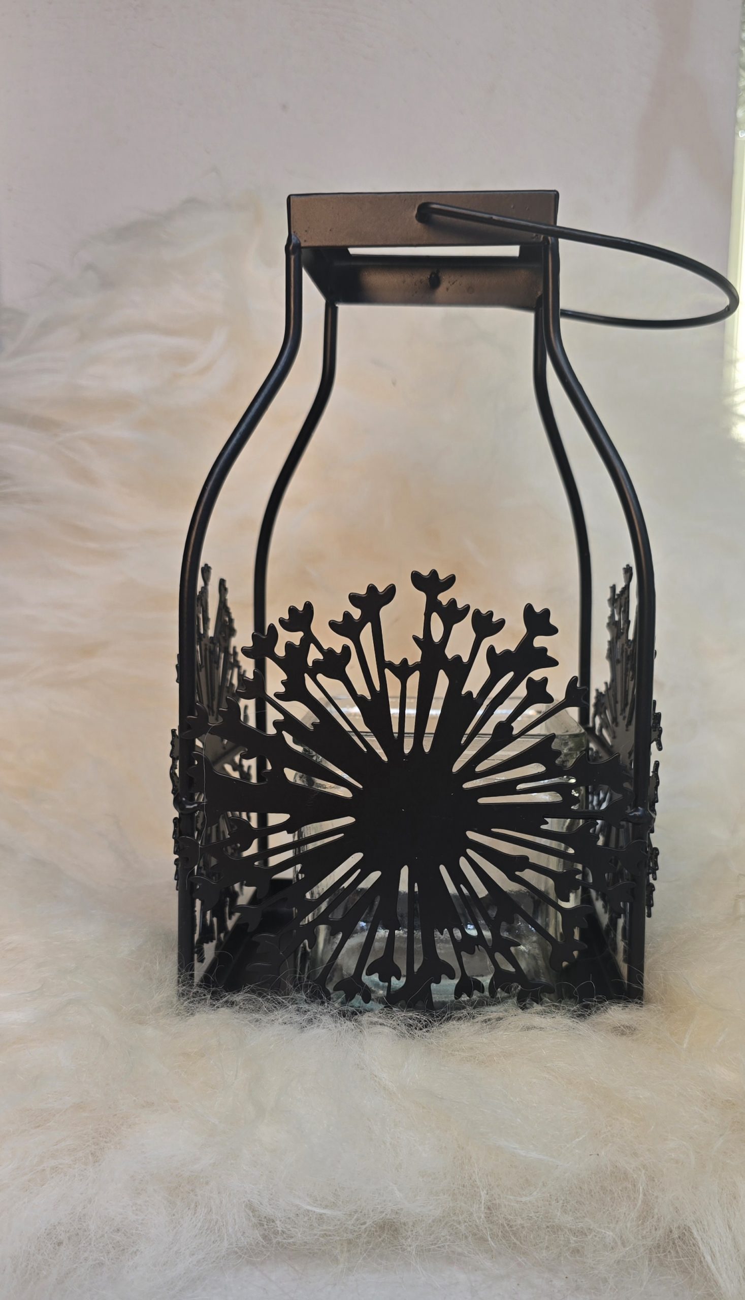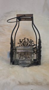 Laterne mit Blüte aus Metall und Glas