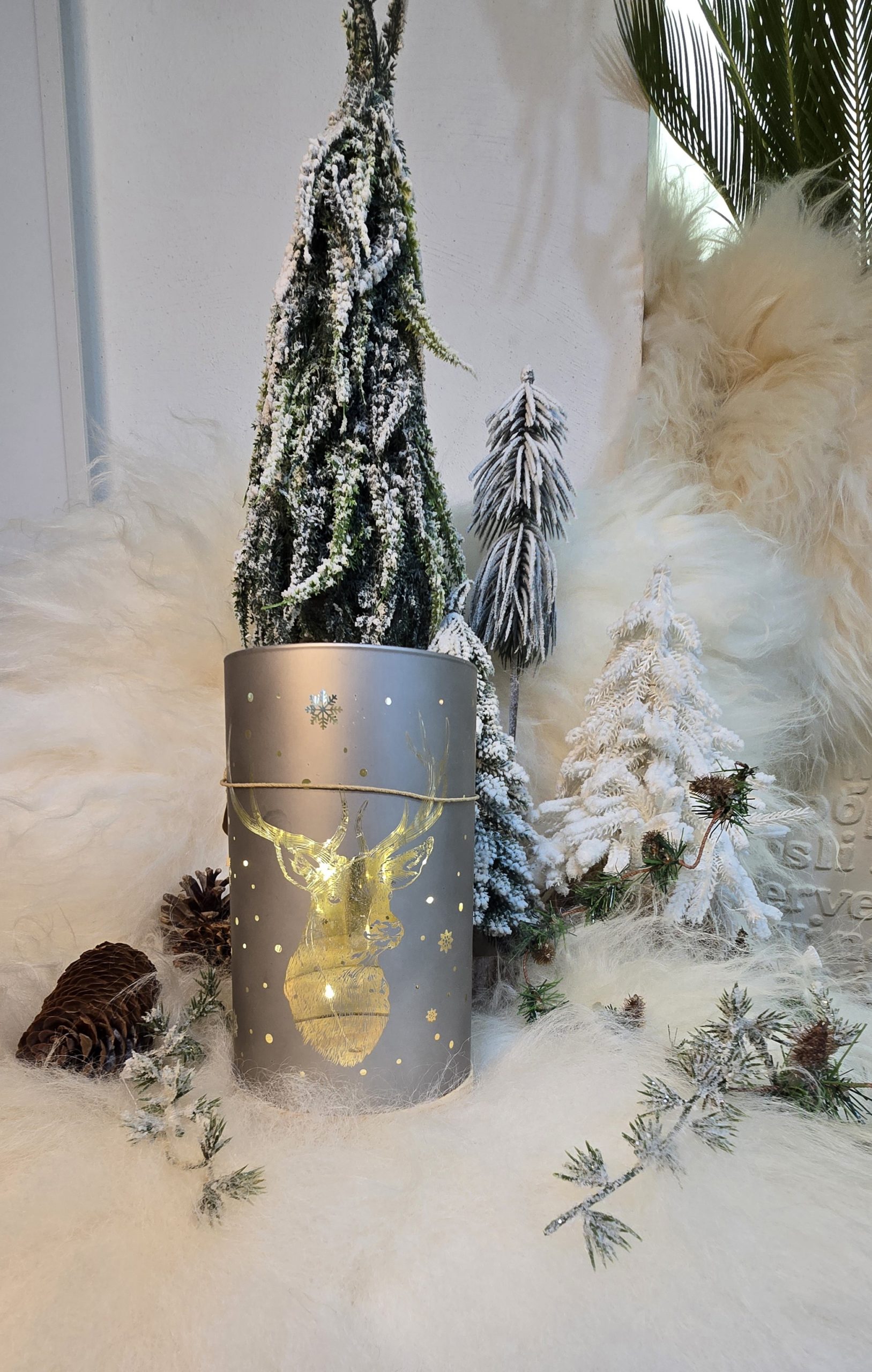 Diese Led Licht ist aus Glas hat als Motiv ein Hirsch und hat eine Timer Funktion.
